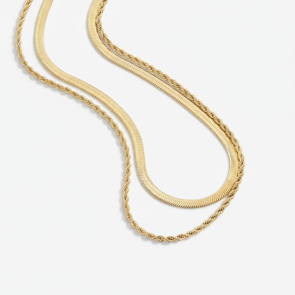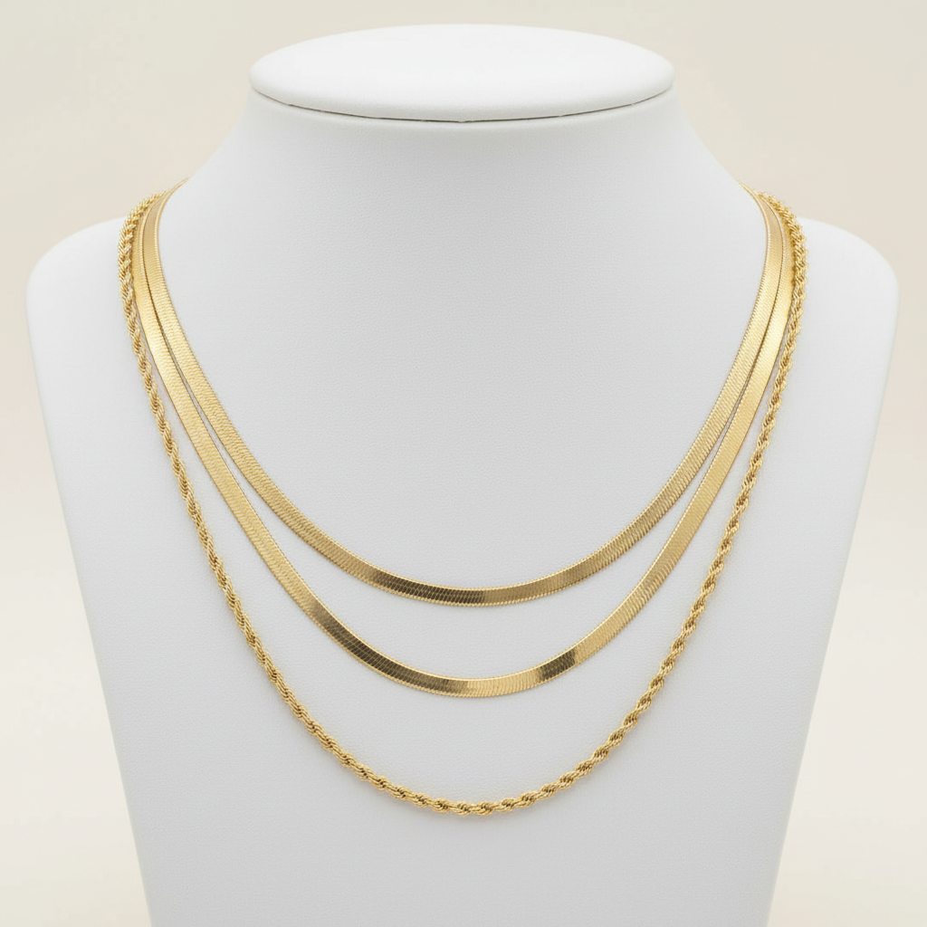 The Sabrina Layered Necklace combines waterproof stainless steel with a gold finish that resists tarnishing and fading. Adjustable from 15.75 to 17.32 inches, it adapts to your neckline with an additional 1.97 inches of flexibility. Lead and nickel-free construction makes it ideal for sensitive skin. A versatile piece built for everyday durability and lasting elegance.