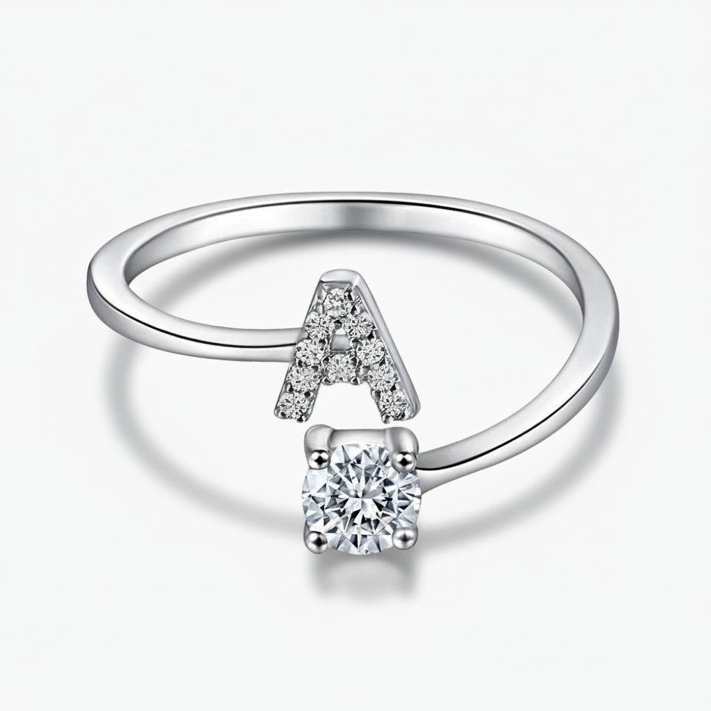 The Initial Silver Ring features a clean, minimalist design with a custom letter detail. Crafted from sterling silver, it offers a refined everyday look while remaining comfortable and easy to wear throughout the day.
