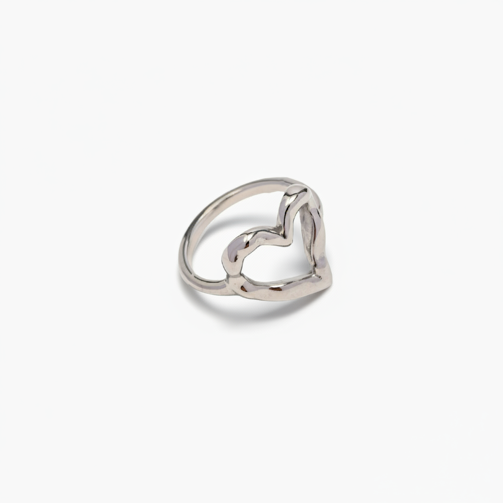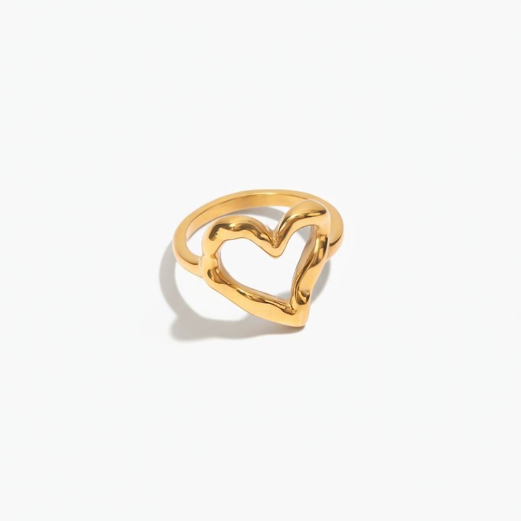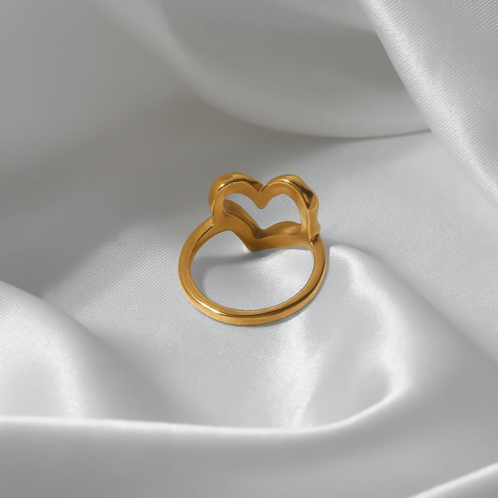The Nalini - Hollow Heart Ring combines minimalist design with everyday durability. Crafted from ethically sourced stainless steel-plated 18k gold, this lightweight ring resists water, sweat, and heat without tarnishing. Its hypoallergenic composition suits all skin types, while the hollow heart silhouette standing 16mm tall, works seamlessly from casual to formal settings. Arrives in sustainable packaging.