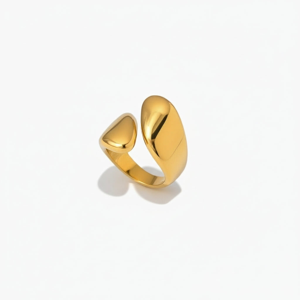 Discover refined elegance with the Sybil - Sculptural Ring, where contemporary design meets timeless craftsmanship. This architectural piece features an open-ended silhouette that makes a bold yet understated statement. Constructed from ethically sourced stainless steel with a luxurious 18k gold plating, it resists water, perspiration, and temperature fluctuations without compromising its lustrous finish. Hypoallergenic properties make it an ideal choice for discerning wearers with sensitive skin. Equally at home in professional or casual settings, the Sybil transitions seamlessly through your day. Presented in eco-conscious packaging that aligns with responsible luxury.